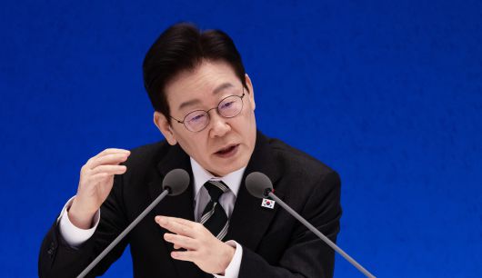이재명 대통령이 21일 오전 청와대 영빈관에서 2026 신년 기자회견 ‘함께 이루는 대전환, 모두 누리는 대도약’에서 발언하고 있다. 청와대사진기자단 |