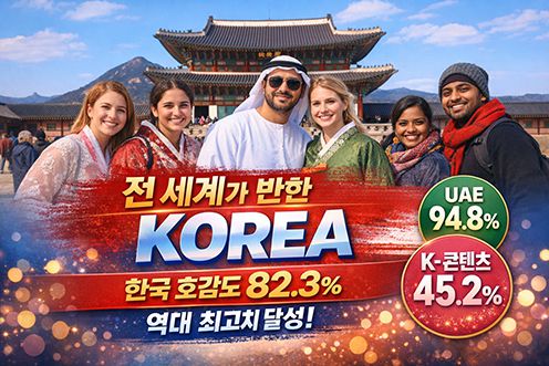 [한국금융신문 마혜경 기자] 외국인들이 한국에 대해 느끼는 호감도가 역대 최고 수준을 기록한 것으로 나타났다. 문화체육관광부가 발표한 ‘2025년도 대한민국 국가이미지 조사’ 결과에 따르면, 외국인의 한국 호감도는 82.3%로 집계돼 전년 대비 3.3%포인트 상승했다. 이는 조사를 시작한 2018년 이래 가장 높은 수치다.