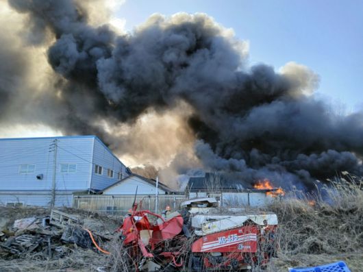 [의성=뉴스핌] 남효선 기자 = 경북 의성의 한 농기계 자재창고에서 화재가 발생해 발화 3시간 40여 분 만에 진화됐다. 다행히 인명 피해는 없었다.