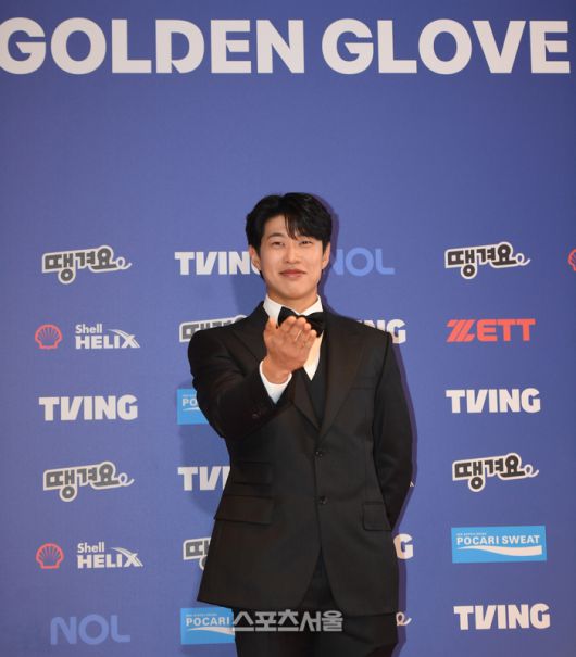 키움 송성문이 9일 서울 송파 롯데호텔 월드에서 열린 2025 KBO 골든글러브 시상식 포토월에서 포즈를 취하고 있다. 사진 | 최승섭 기자 thunder@sportsseoul.com |