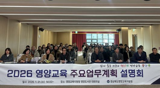 경상북도영양교육지원청(교육장 박근호)은 2026년 1월 21일(수) 신축 경상북도교육청 영양도서관 대회의실에서 '삶의 힘을 키우는 해달뫼 영양교육'실현을 위한 「2026 영양교육 주요업무계획 설명회」를 개최하였다.