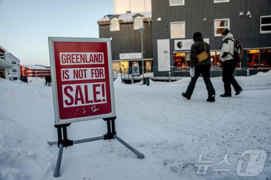 (누크 AFP=뉴스1) 이정환 기자 = 20일(현지시간) 그린란드 누크에서 "그린란드는 판매용이 아닙니다!"라는 표지판이 설치돼 있다. 2026.01.20. ⓒ AFP=뉴스1 Copyright ⓒ 뉴스1. All rights reserved. 무단 전재 및 재배포, AI학습 이용 금지.
