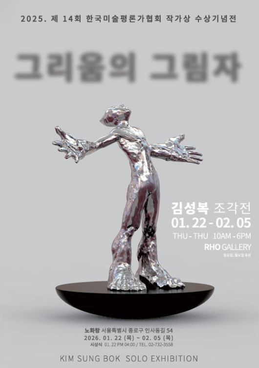 (서울=뉴스1) 김정한 기자 = 인사동 노화랑은 새해 첫 전시로 조각가 김성복의 개인전 '그리움의 그림자'를 개최한다. 22일부터 2월 5일까지 열리는 이번 전시는 제14회 한국미술평론가협회 작가상 수상을 기념하는 자리다. 작가의 깊이 있는 예술 세계를 응축한 조각 20점과 회화 80점을 선보인다.