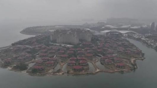 중국 하이난성 앞바다에 조성된 인공 군도 하이화다오(海花岛·오션 플라워 아일랜드) 전경. ‘중국판 두바이’를 표방하며 대규모 개발이 추진됐지만, 상당수 주거·상업시설이 미완 상태로 남아 중국 부동산 위기의 상징으로 거론되고 있다. SNS 영상 캡처 |
