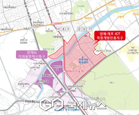 (서울=국제뉴스) 최정범 기자 = 양재1·2동 일대 약 111만㎡가 'ICT 특정개발진흥지구'로 최종 지정돼 기존 양재·우면 지역의 '양재 AI 미래융합혁신특구(39만㎡)'와 유기적으로 연계되는 대규모 AI·ICT 산업벨트가 구축됐다.