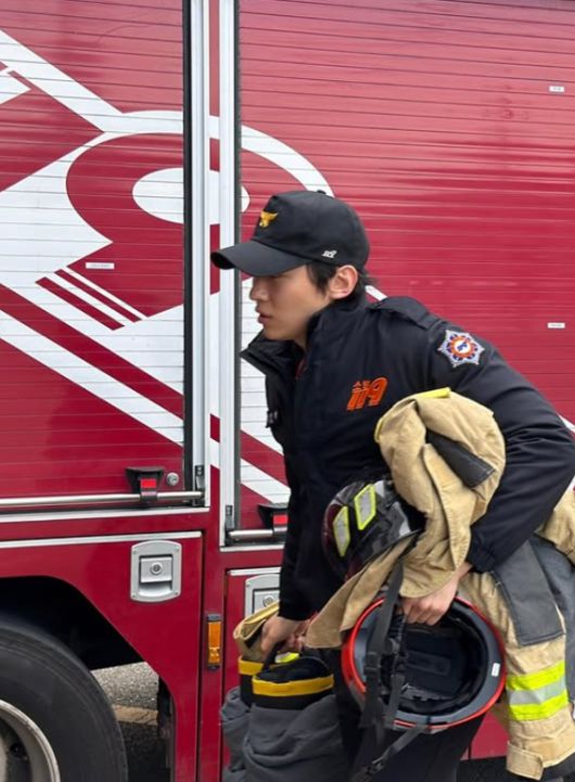 탄탄한 피지컬과 진중한 분위기가 어우러지며, 실제 소방관을 방불케 하는 모습으로 팬들의 감탄을 자아냈다.