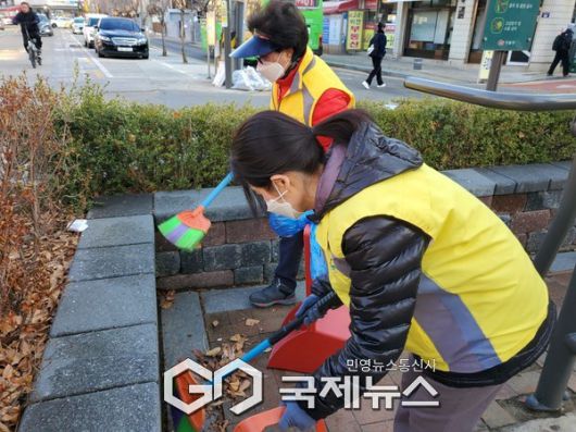 환경순찰 스마트모니터요원들이 취약지점들을 순찰하며 청소를 하고 있다. [사진제공=구로구청] |