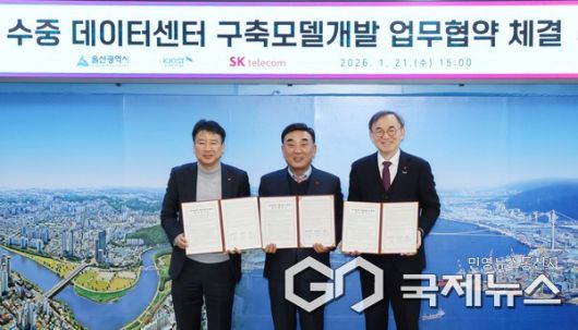 협약식에는 김두겸 울산시장과 김구영 에스케이(SK)텔레콤 부사장, 이희승 한국해양과학기술원장이 참석해 수중 데이터센터 구축모형 개발과 사업 추진을 위한 협력을 약속했다.
