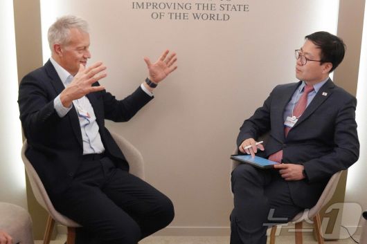 (서울=뉴스1) = 여한구 산업통상부 통상교섭본부장이 20일(현지시간) 스위스 다보스에서 열린 '2026 세계경제포럼 연차회의'에서 제임스 퀸시 코카콜라 CEO와 면담을 하고 있다. (산업통상부 제공. 재판매 및 DB 금지) 2026.1.22/뉴스1urodoct2@news1.krCopyright ⓒ 뉴스1. All rights reserved. 무단 전재 및 재배포, AI학습 이용 금지.