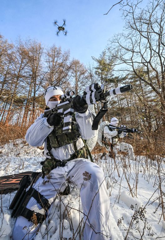 혹한 속 드론과 정찰활동하는 특전사 장병들