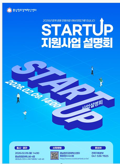 충남혁신센터는 현재 '2026년 창업도약패키지 지원사업' 참여기업을 이달 27일까지 모집중이다. 사업 고도화와 시장확장을 준비중인 도약단계 창업기업이 대상이며 사업화 자금지원과 함께 맞춤형 성장 프로그램을 제공한다. 또 충남지역 청년창업 활성화를 위한 '2026년 청년 창업·창직 지원사업'도 오는 2월 2일까지 신청을 받는다.