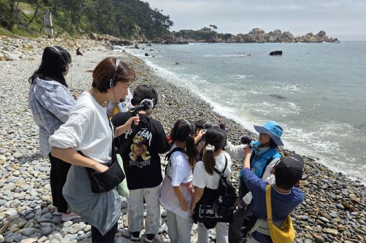 울산 전문 예술단체 ‘플러그인 사운드’가 소리풍경 체험키트를 활용해 울산시 동구 대왕암공원에서 슬도까지 2.8㎞의 해안길을 따라 자연의 소리를 들으며 걷는 ‘해파랑길 사운드워킹’ 프로그램을 운영하고 있다. [울산 동구청 제공] |