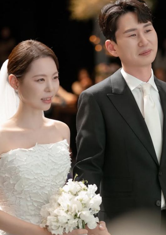영자는 우아한 요프숄더 웨딩드레스를 완벽히 소화하며 단아하면서도 고급스러운 분위기를 자아냈다.