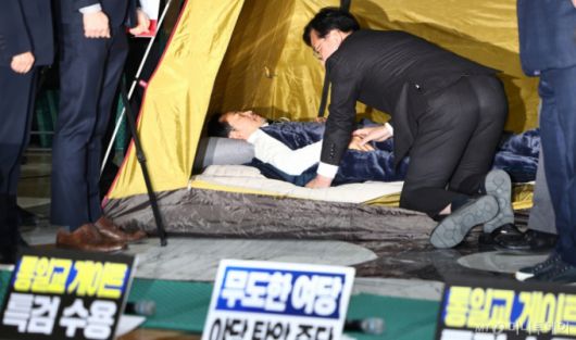 송 원내대표는 "민주당의 인면수심 DNA(유전자)에 분노를 금할 수 없다"며 "장 대표의 단식은 밤이 되면 농성장에서 사라지던 이재명식 출퇴근, 단식 21일 차에 담배를 피우던 정청래식 흡연 단식이 아니다"라고 했다.