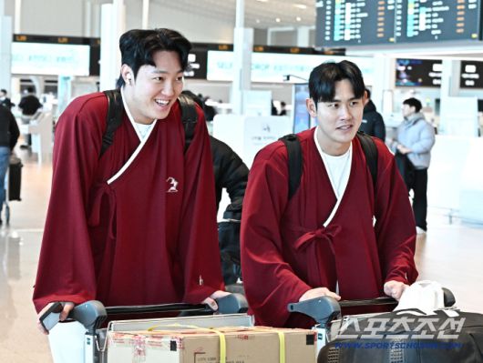 22일 키움 히어로즈 선수단이 인천공항 제2터미널을 통해 전지훈련을 위해 출국했다. 출국을 준비하고 있는 안우진, 조영건. 인천공항=송정헌 기자songs@sportschosun.com/2026.01.22/
