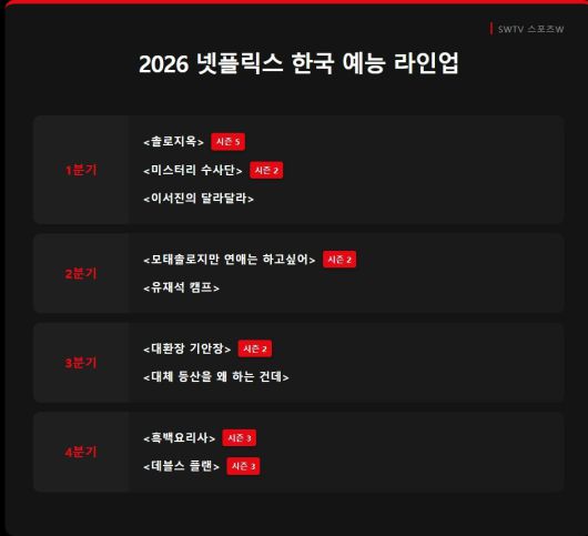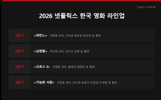 [SWTV 스포츠W 임가을 기자] 경쟁력 있는 한국 콘텐츠를 앞장서 선보이는 넷플릭스가 올해 영화·시리즈·예능의 라인업을 소개했다.