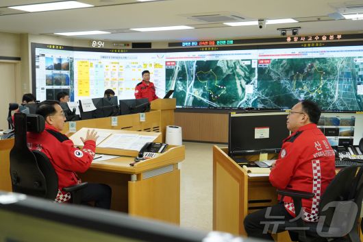 (서울=뉴스1) = 김인호 산림청장이 22일 중앙산림재난상황실에서 전라남도 광양시와 부산광역시 기장군에서 발생한 산불 상황을 점검하고 있다. (산림청 제공. 재판매 및 DB 금지) 2026.1.22/뉴스1urodoct2@news1.krCopyright ⓒ 뉴스1. All rights reserved. 무단 전재 및 재배포, AI학습 이용 금지.