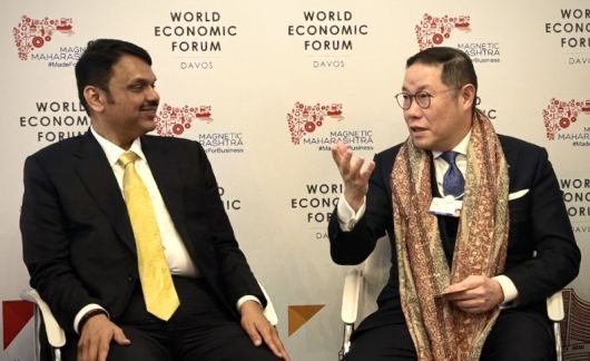 조현상(오른쪽) HS효성 부회장이 다보스 포럼에 참석해 데벤드라 파드나비스 인도 마하라슈트라 주총리를 만나 인도 투자 계획에 대해 논의했다./사진=HS효성 |