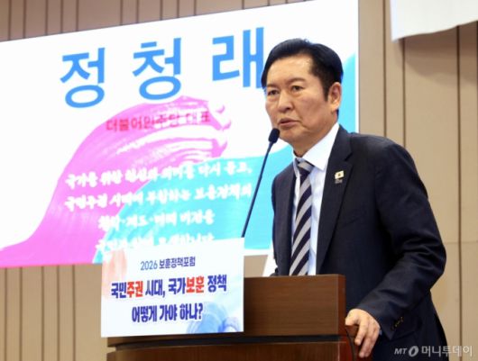 [서울=뉴시스] 김금보 기자 = 정청래 더불어민주당 대표가 21일 오후 서울 여의도 국회 헌정기념관에서 열린 '국가보훈정책특별위원회 포럼 '에서 발언을 하고 있다. 2026.01.21. kgb@newsis.com /사진=김금보 |