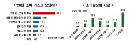 소비가 본격 활성화하는 시점에 대해서는 국민 절반(53.3%) 이상이 하반기 이후가 될 것이라고 답했다. 구체적으로는 △2026년 하반기(22.4%) △2027년(19.3%) △2028년 이후(11.6%) 순이었다.