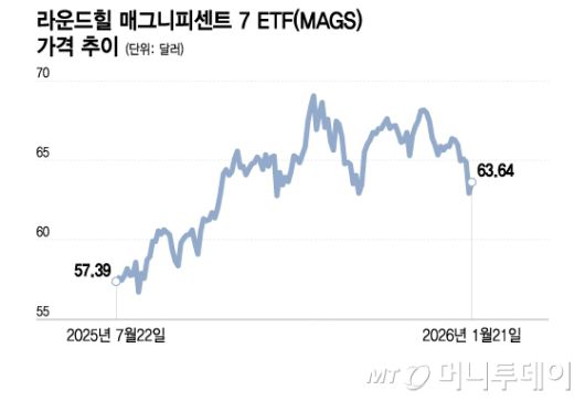 라운드힐 매그니피센트 7 ETF(MAGS) 가격 추이/그래픽=이지혜 |