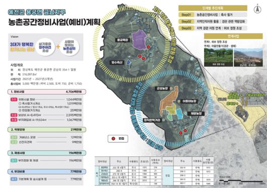 문화·복지·교육 등 생활 서비스 기능을 확충해 배후 마을까지 혜택이 확산되도록 2027년 준공을 목표로 하고 있다. 농림축산식품부 공모 사업으로 선정된 농촌공간 정비 사업을 통해 용문면 상금곡지구와 용궁면 금남지구의 유해시설도 정비해 주민들의 오랜 불편을 해소할 계획이다.