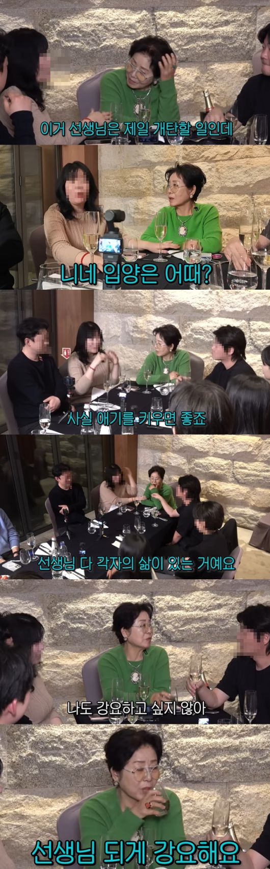 2차 장소로 이동한 이후에도 선우용여의 임신 관련 발언은 이어졌다. 참석한 부부들 전원이 아이가 없다는 사실을 알게 된 그는 "개탄할 일"이라며 고개를 내저었다.