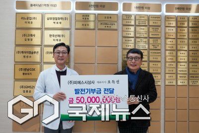 [김옥빈 기자] (부산=국제뉴스) 김옥빈 기자 = 부산을 대표하는 신발 소싱 전문기업 '피에스시상사'가 고신대학교복음병원에 병원 발전기금 5000만 원을 기부했다.