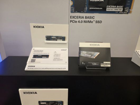 PCIe 4.0 인터페이스 기반 신제품도 소개됐다. '키오시아 EXCERIA BASIC NVMe SSD'는 PCIe 4.0 인터페이스를 사용해 PCIe 3.0/SATA SSD를 사용 중인 사람에게 업그레이드를 제안하는 NVMe SSD다. NVMe 2.0d 기술이 적용됐으며, 순차 읽기 속도는 2TB 모델 기준 7,300MB/s다.