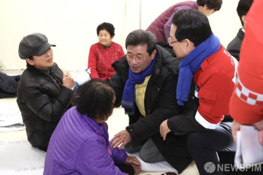 [무안=뉴스핌] 조은정 기자 = 정인화 광양시장이 22일 광양시 옥곡면 산불 피해 현장을 점검하고 이재민들을 위로하고 있다. [사진=광양시] 2026.01.22 ej7648@newspim.com