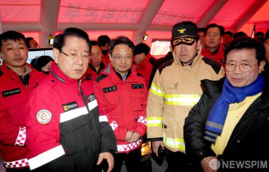 [무안=뉴스핌] 조은정 기자 = 김영록 전남도지사가 22일 광양시 옥곡면 산불현장지휘소를 방문, 현황을 청취하고 있다. [사진=전남도] 2026.01.22 ej7648@newspim.com