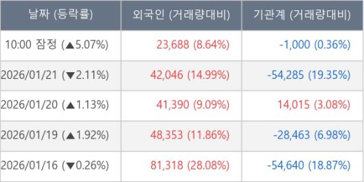 [표] 외국인ㆍ기관 순매매량 (단위 주)