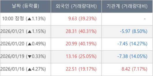 [표] 외국인ㆍ기관 순매매량 (단위 만주)