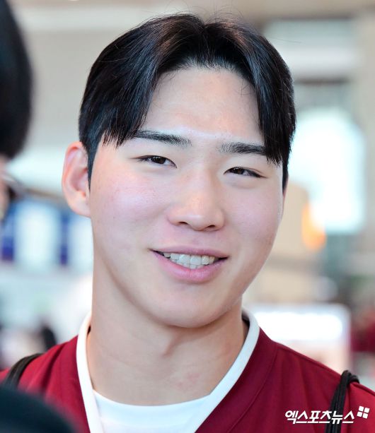 (엑스포츠뉴스 인천공항, 김한준 기자) 2026시즌 스프링캠프 훈련에 나서는 키움 히어로즈가 22일 오전 인천국제공항을 통해 대만 가오슝으로 출국했다. 출국 전 키움 이주형이 취재진의 질문에 답하고 있다.김한준 기자 kowel@xportsnews.com