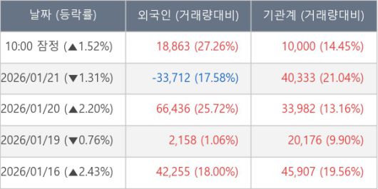 ※ 사모펀드 등 일부 기관의 순매매량은 표시되지 않음
