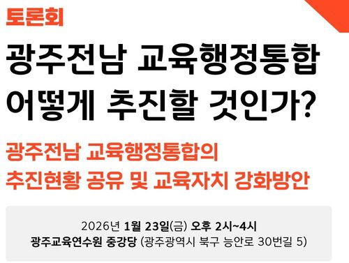 23일 오후 2시에는 광주교육연수원에서 시교육청·교원단체·교육시민단체 등이 주관하고 광주시의 행정통합 담당 공무원들도 참석하는 토론회가 예정돼 있다.