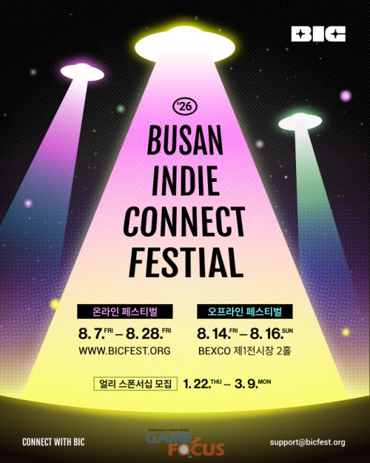 게임도시 부산광역시(시장 박형준), (재)부산정보산업진흥원(원장 김태열), (사)부산인디커넥트페스티벌조직위원회(조직위원장 주성필, 이하 BIC 조직위)는 글로벌 인디게임 페스티벌 부산인디커넥트페스티벌 2026(이하 BIC 2026)의 개최 일정을 공식 발표했다.
