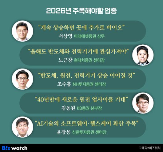 서상영 미래에셋증권 리서치센터 상무는 "올해 새로운 테마가 나타날 가능성은 높지 않다. 반도체, 자동차, 로봇, 그리고 원자력과 방산, 조선과 같이 계속 상승하던 곳, 그리고 추가로 바이오 쪽에서 순환매가 지속될 가능성이 높다"며 "순환매 속에서 업종의 압축이 진행되고 지수보다는 종목에 집중할 것으로 판단된다"고 분석했다.