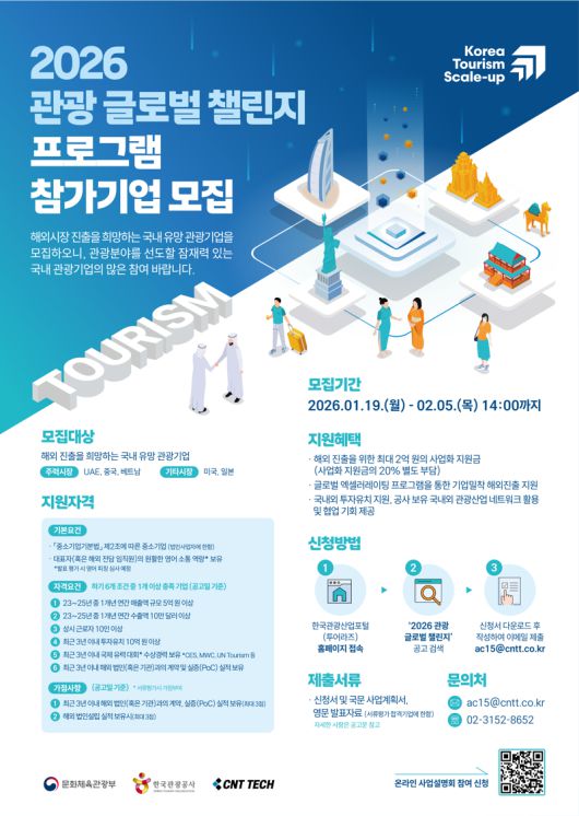 씨엔티테크 '2026 관광 글로벌 챌린지 프로그램' 참여기업 모집