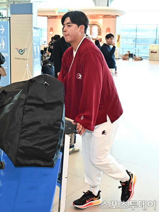 [인천공항=스포츠투데이 팽현준 기자] 키움 히어로즈 박준현이 2026 시즌 준비 스프링캠프를 위해 22일 인천국제공항에서 출국을 준비하고 있다. 2026.01.22.
