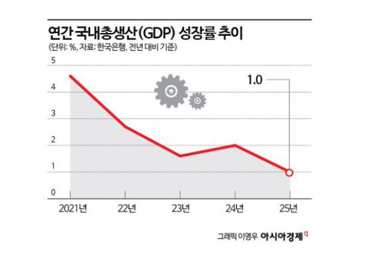 지난해 성장률은 코로나19 영향에 연간으로 역성장한 2020년(-0.7%) 이후 5년 만에 가장 낮았다. 우리나라 경제 성장률은 2021년 4.6%, 2022년 2.7%, 2023년 1.6%로 3년 연속 하락세를 이어가다가 2024년 2.0%로 반등했으나 지난해 되밀렸다.