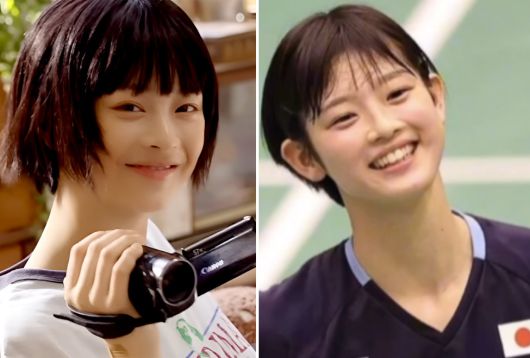 일본의 20세 배드민턴 선수 타구치 마야가 뉴진스 하니를 닮은 외모로 한국 온라인상에서 화제다. 사진=인스타그램 왼쪽은 뉴진스 하니, 오른쪽은 타구치 마야. 사진=뉴진스 유튜브, @maya_tguchifan, |