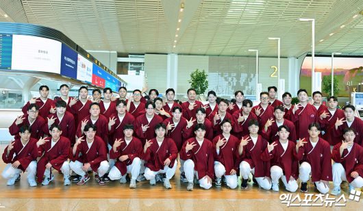 (엑스포츠뉴스 인천공항, 김한준 기자) 2026시즌 스프링캠프 훈련에 나서는 키움 히어로즈가 22일 오전 인천국제공항을 통해 대만 가오슝으로 출국했다. 출국 전 키움 선수단이 포즈를 취하고 있다.김한준 기자 kowel@xportsnews.com