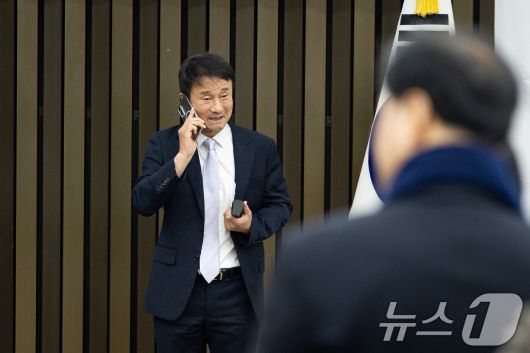 (서울=뉴스1) 유승관 기자 = 한병도 더불어민주당 원내대표가 22일 서울 여의도 국회에서 열린 비공개 정책의원총회에 참석하며 전화통화를 하고 있다. 2026.1.22/뉴스1