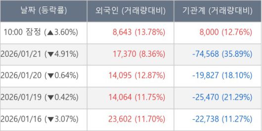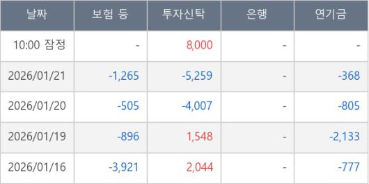 ※ 사모펀드 등 일부 기관의 순매매량은 표시되지 않음