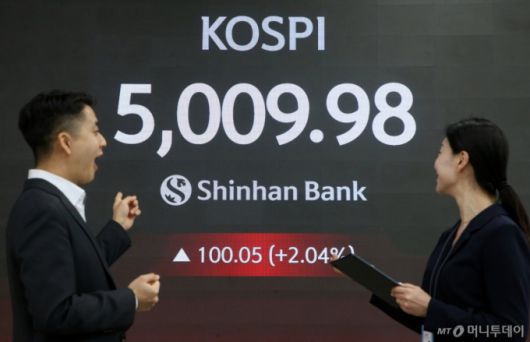 여당이 법안 발의에 속도를 내는 것은 코스피지수가 이날 장중 5000을 돌파하면서 추가 입법 지원사격이 필요하다는 판단때문이다. 원/달러 환율이 최근 1480원대로 치솟는 등 경제를 짓누르는 고환율 기조를 안정화하는 데 힘을 보탠다는 의미도 담고 있다.