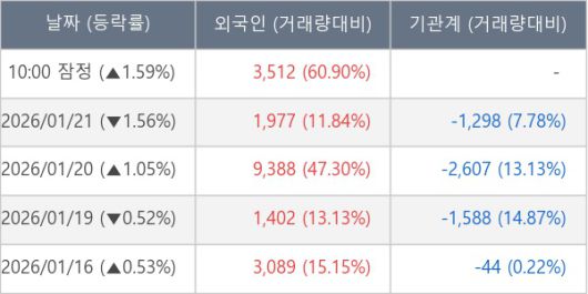 [표] 외국인ㆍ기관 순매매량 (단위 주)