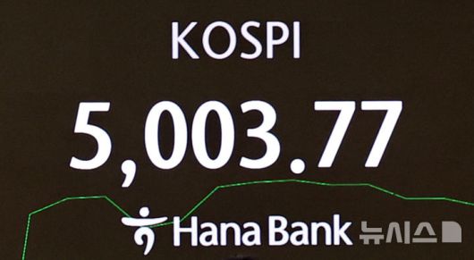 [서울=뉴시스] 강수윤 기자 = 코스피가 꿈의 지수로 불렸던 '오천피'를 역사상 처음으로 돌파하며 코스피 5000 시대를 열었다. 코스피 지수 출범 이후 46년 만의 대기록으로 한국 주식시장의 역사에 새로운 이정표를 세웠다.