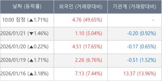 [표] 외국인ㆍ기관 순매매량 (단위 만주)