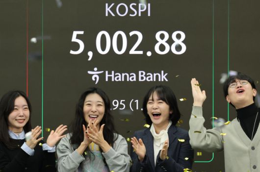 코스피가 사상 처음 장중 5000선을 돌파한 가운데 원·달러 환율은 이틀 연속 하락했다.